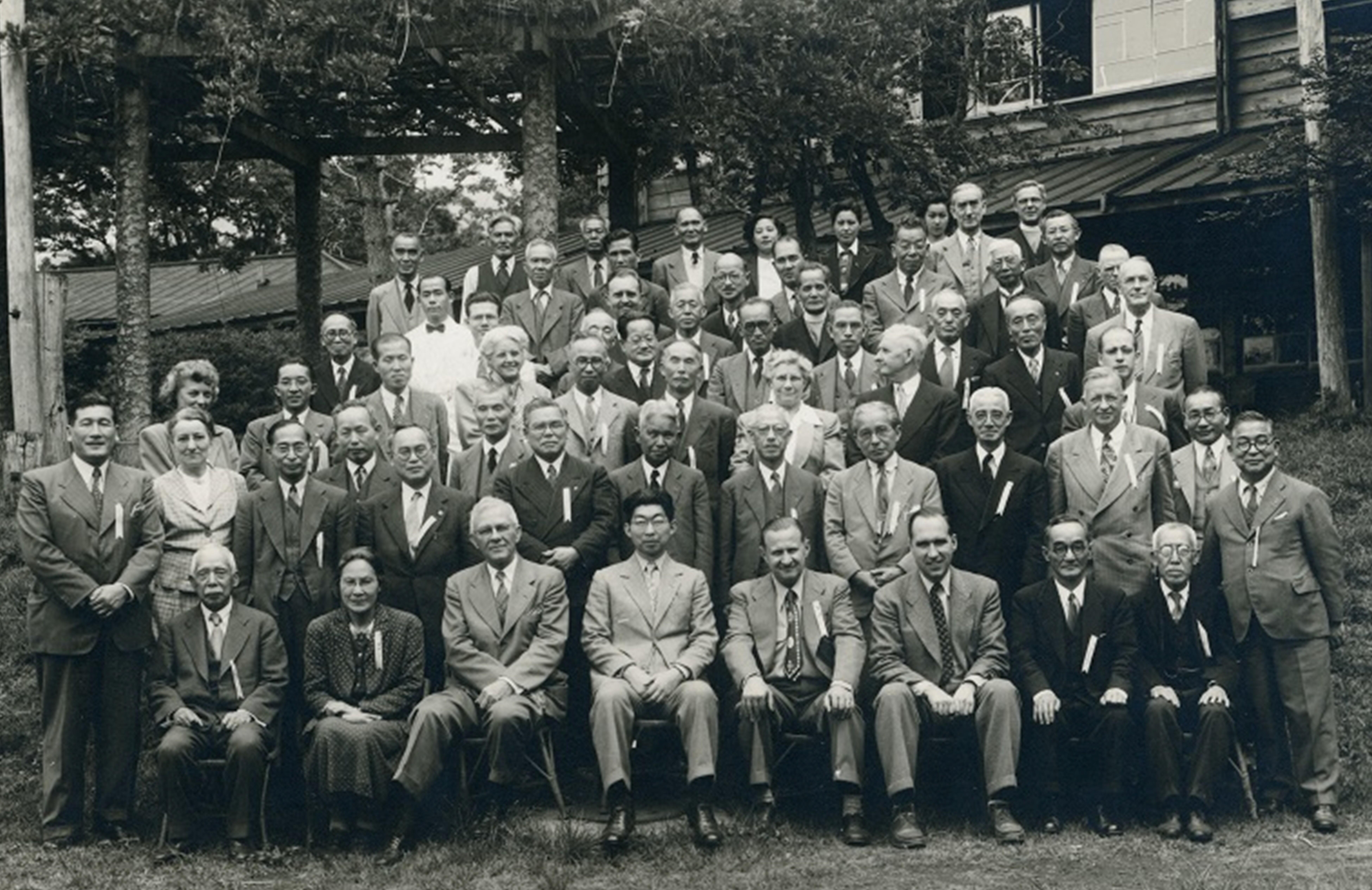 数年前まで戦火を交えていた日本人とアメリカ人が一堂に会し、新しい日本や世界のリーダーとなる人材、人類社会の平和的発展に奉仕する人材を育てる大学を創ろうと力を集結したのです。この会議では、大学運営の基本文書である寄付行為や学長、副学長、理事会、評議員会の構成などが決まり、「国際基督教大学」設立の出発点になりました。