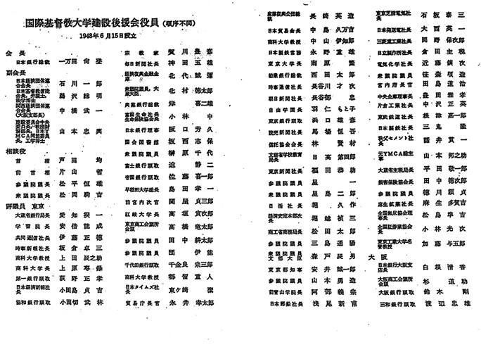 「昭和二五年七月 国際基督教大学建設後援会記録」 国際基督教大学広報室ICU50年史編纂室 1995年3月