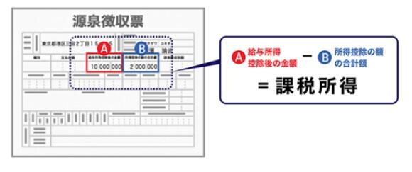*課税所得金額は源泉徴収票の「給与所得控除後の金額」-「所得控除の額の合計額」で算出できます。