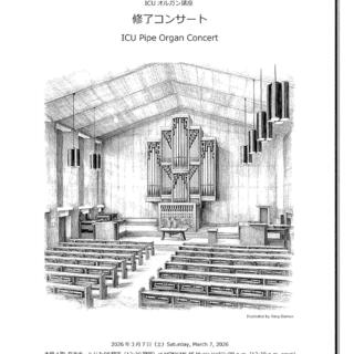 2025年度オルガン講座受講生による修了コンサート 宗教音楽センターでは在学生を対象としたオルガン講座を開講しています。2025年度の修了生による修了コンサートを開催します。受講を始めたばかりの学生から長年レッスンを継続した学生まで、研鑽の成果をぜひお聴きください。どなたでもご入場いただけます。 3月7日(土曜日) 13:00開演 @本館4階 音楽ホール 森有正記念オルガン 15:00開演 @ICU礼拝堂 Riegerオルガン 入場無料